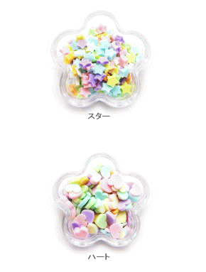 ●今一番のお勧めはコレ! 樹脂粘土製 フレーク ミックスカラー 4mm (2グラム)価格: 105円 サイズ:スター…約4mm/厚み…約0.5?1mmハート…約4×5mm/厚み…約1.4mm左画像は約2グラムです。耐水性あります。 (更新日時:2010/12/26 15:45) Supported by 楽天ウェブサービス |